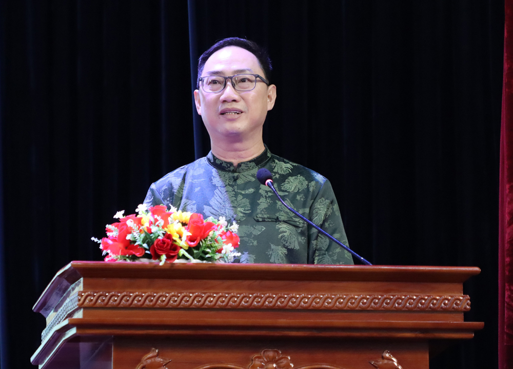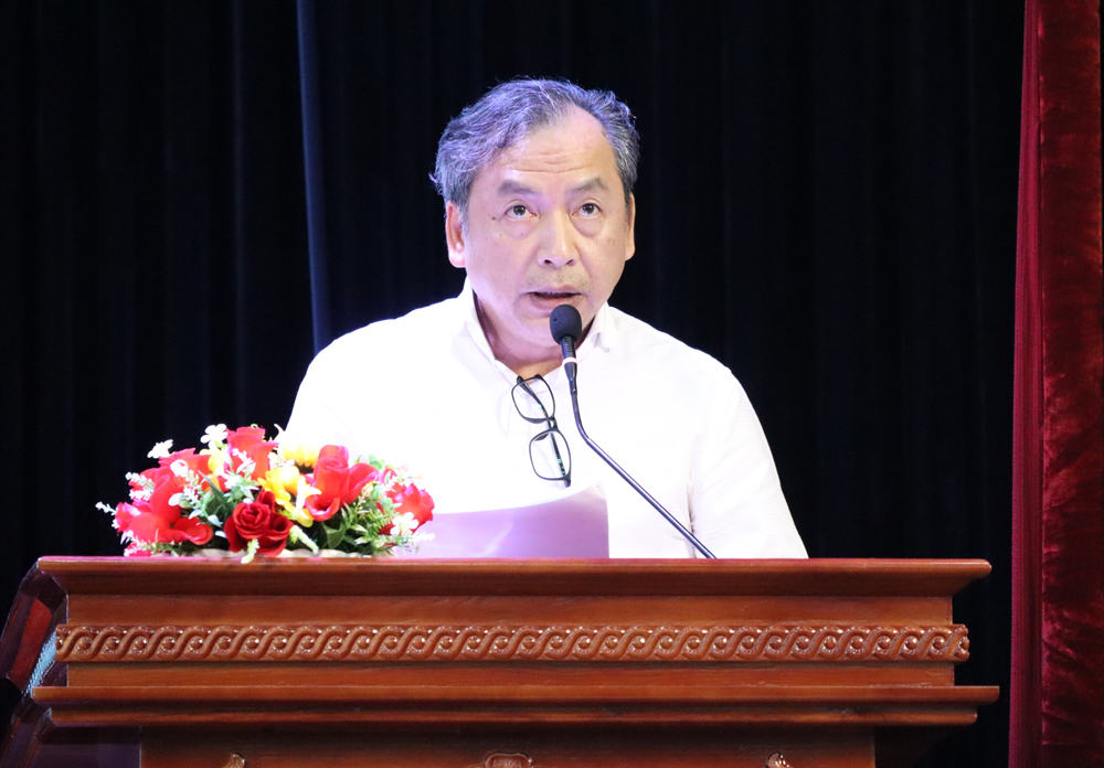 GS.TS Vũ Gia Hiền, Trung tâm nghiên cứu ứng dụng Văn hóa - Du lịch trình bày tham luận về bí mật chữ Nôm trong nhà thờ họ Lê tại tọa đàm.