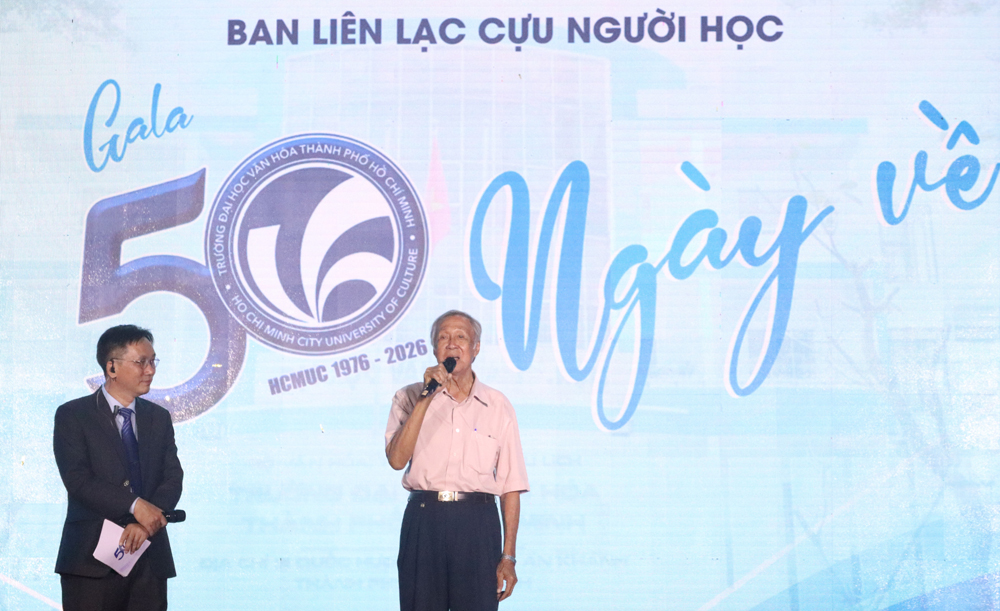 VHSO - Tối ngày 2/1, trong không khí trang trọng và ấm áp, Trường Đại học Văn hóa TP. Hồ Chí Minh (HCMUC) đã tổ chức Chương trình Gala “50 năm - ngày về” kỷ niệm 50 năm thành lập Trường (03/01/1976 - 03/01/2026). Chương trình là điểm nhấn đặc biệt trong chuỗi hoạt động kỷ niệm nửa thế kỷ hình thành và phát triển của HCMUC sau Hội thảo khoa học diễn ra cùng ngày. Gala “50 năm - ngày về” có sự tham dự của lãnh đạo Trường qua các thời kỳ; các nhà khoa học, nhà quản lý, giảng viên, viên chức, người lao động; đại diện các cơ quan, đơn vị đối tác, cùng đông đảo cựu học viên, sinh viên đã và đang đồng hành với HCMUC trong suốt chặng đường 50 năm qua.
