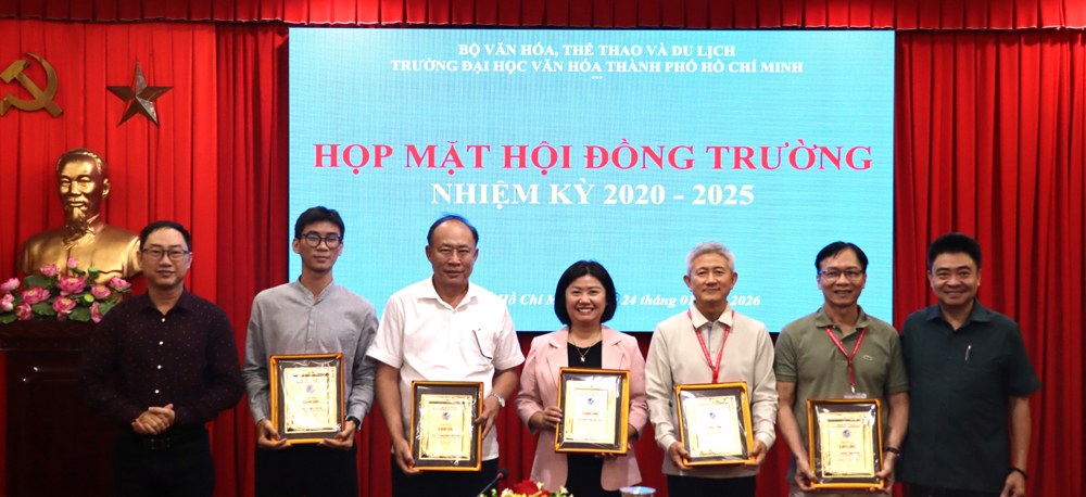 VHSO - Sáng ngày 24/01, Trường Đại học Văn hóa TP. Hồ Chí Minh (HCMUC) tổ chức buổi gặp mặt, chia tay Hội đồng trường nhiệm kỳ 2020 - 2025, đánh dấu thời điểm khép lại một giai đoạn hoạt động quan trọng trong tiến trình đổi mới mô hình quản trị đại học của Nhà trường. Buổi gặp mặt diễn ra trong không khí trang trọng, ấm áp và giàu cảm xúc, với sự tham dự của Đảng ủy; Ban Giám hiệu; các thành viên Hội đồng trường nhiệm kỳ 2020 - 2025; đại diện lãnh đạo các đơn vị; cùng đại diện Đoàn thanh niên - Hội Sinh viên HCMUC.