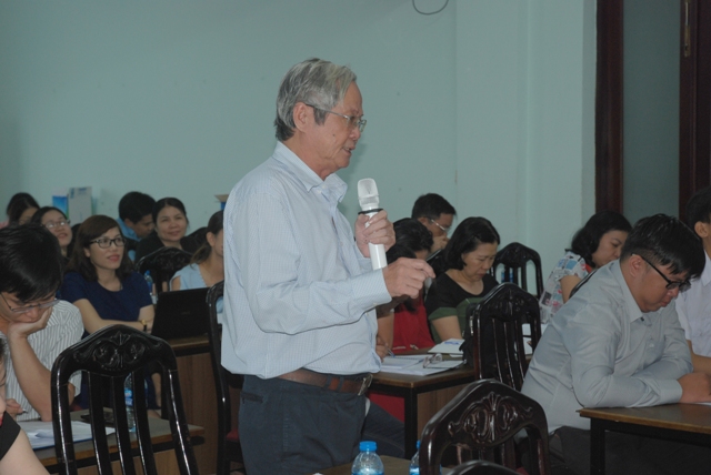 Đảng viên Trần Văn Ánh - Nguyên Hiệu trưởng Nhà trường phát biểu tại Hội nghị.