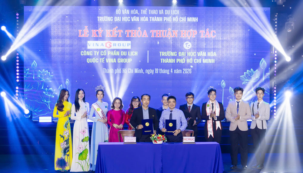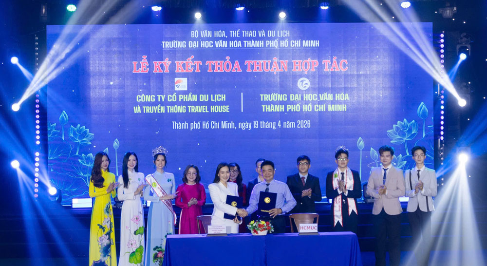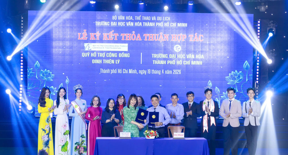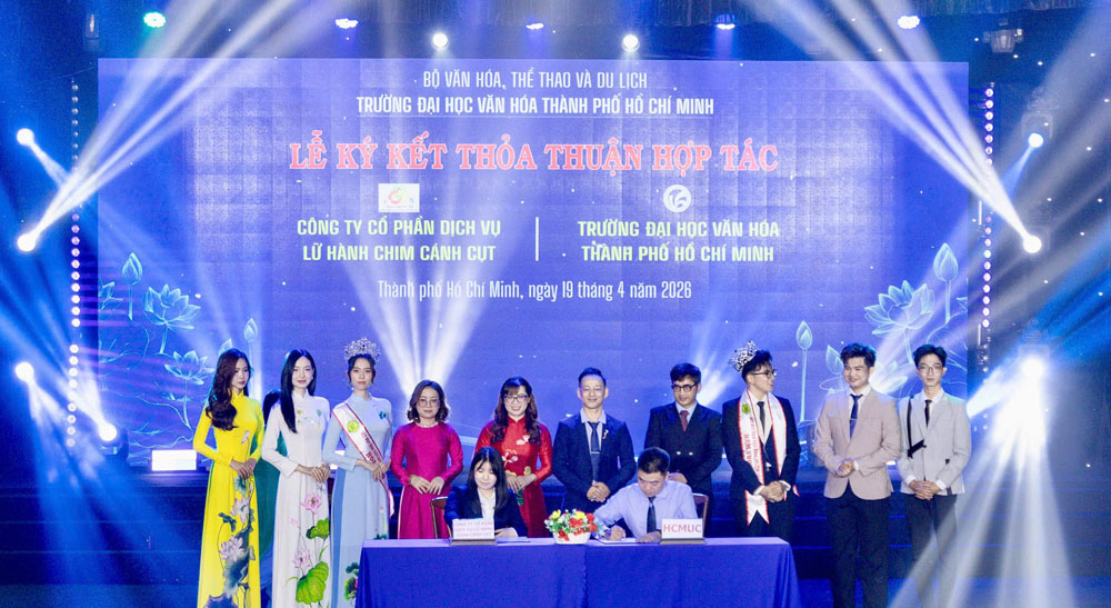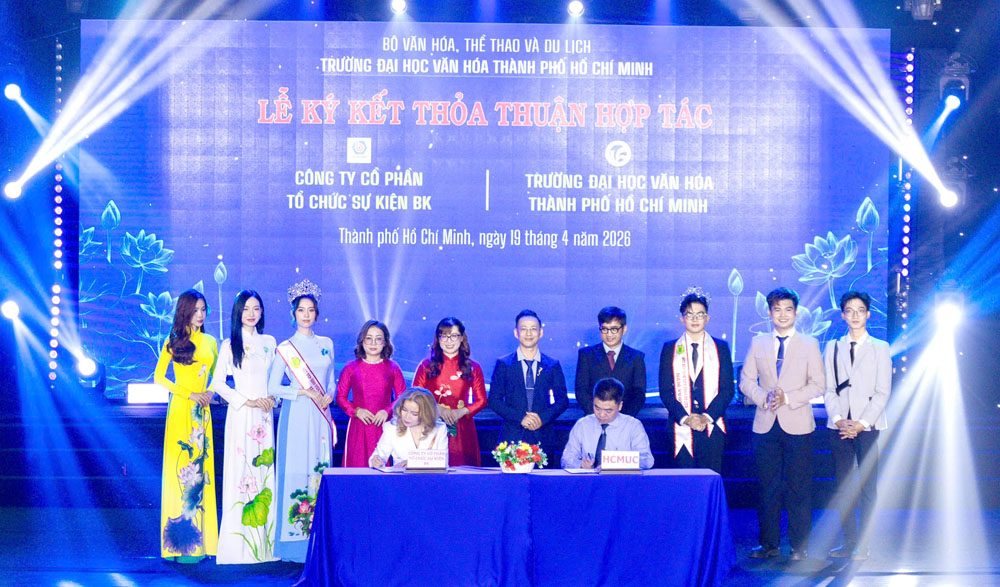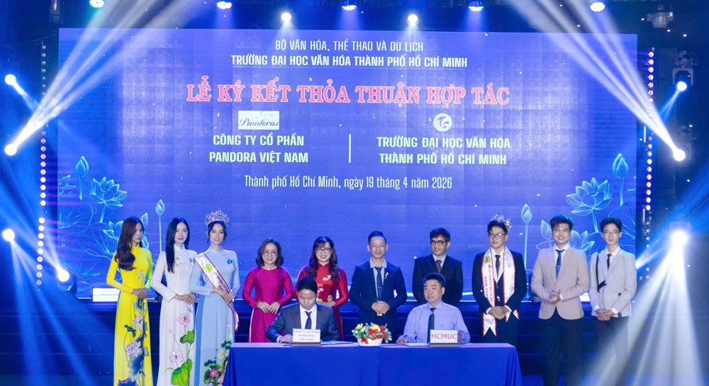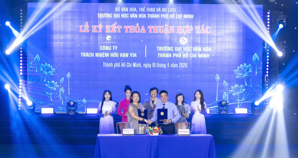 VHSO - Chiều ngày 19/4, tại Hội trường C, Trường Đại học Văn hóa TP. Hồ Chí Minh (HCMUC) đã tổ chức Lễ ký kết thỏa thuận hợp tác với các doanh nghiệp, tổ chức trên địa bàn Thành phố. Sự kiện không chỉ đánh dấu bước phát triển trong chiến lược liên kết đào tạo với thực tiễn mà còn mở ra nhiều cơ hội hợp tác sâu rộng trong các lĩnh vực văn hóa, nghệ thuật, thông tin, truyền thông và du lịch.