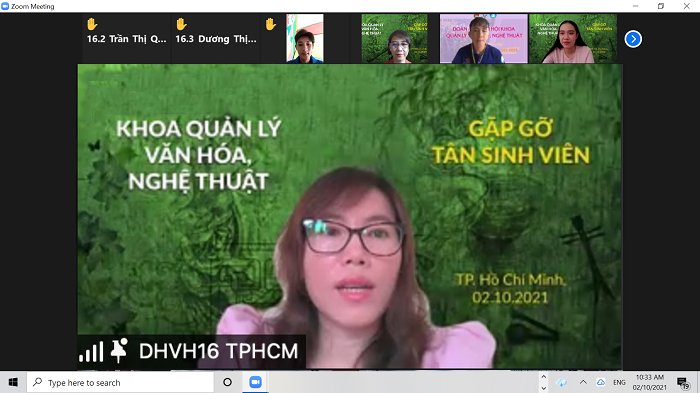 Sáng nay, lúc 8h30 phút ngày 2/10/2021, Khoa Quản lý văn hóa, nghệ thuật đã tổ chức buổi gặp mặt Tân sinh viên Khóa học 2021 - 2025 trên phần mềm Lauch Zoom của Nhà trường.