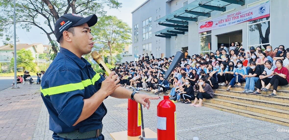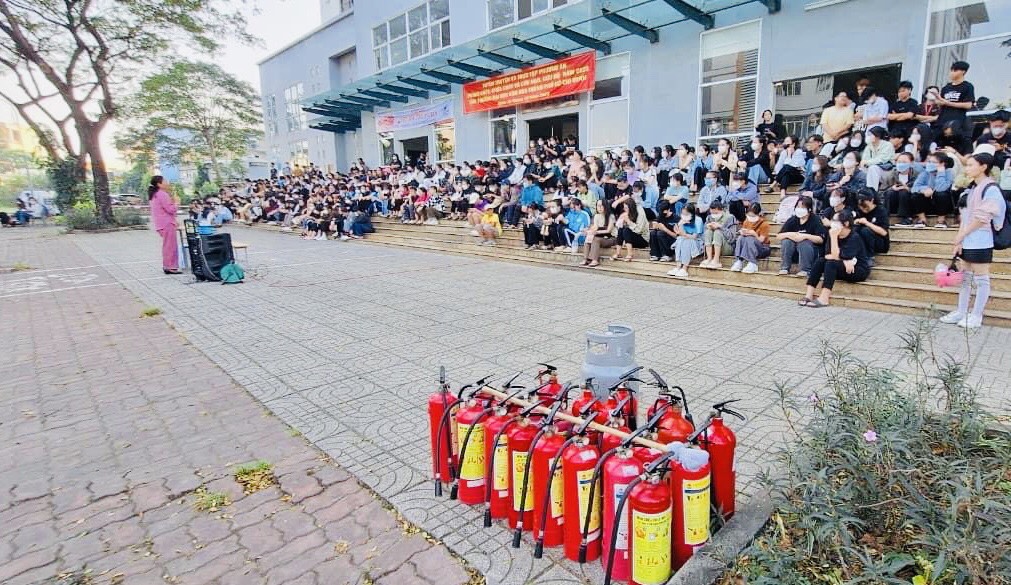 VHSO - Công tác phòng cháy chữa cháy và cứu nạn cứu hộ (PCCC&CNCH) đóng vai trò quan trọng trong việc bảo vệ tính mạng, tài sản của mọi gia đình và xã hội. Việc thực hiện tốt công tác PCCC&CNCH là đã bảo vệ được tính mạng, tài sản, giữ gìn được sự bình yên, hạnh phúc cho mọi gia đình và xã hội. Trong những năm qua, công tác phòng chống cháy nổ luôn nhận được sự quan tâm đặc biệt của Đảng ủy, Ban Giám hiệu Nhà trường, nhất là trong điều kiện Nhà trường sử dụng nhiều nhà cao tầng như khu nhà học, ký túc xá tại 2 cơ sở. Ngoài việc đầu tư đầy đủ các trang thiết bị, Nhà trường chú trọng củng cố, kiện toàn lực lượng PCCC&CNCH cơ sở và bồi dưỡng, huấn luyện nghiệp vụ PCCC&CNCH cho lực lượng này.