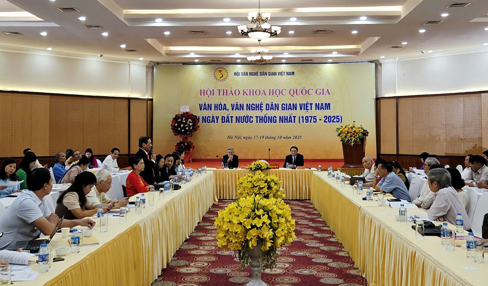 VHSO - Sáng ngày 18/10, tại Hà Nội, Hội Văn nghệ dân gian Việt Nam tổ chức Hội thảo khoa học quốc gia với chủ đề “Văn hóa, văn nghệ dân gian Việt Nam sau ngày đất nước thống nhất (1975 - 2025)”. Sự kiện quy tụ đông đảo các nhà khoa học, chuyên gia, hội viên và đại biểu đến từ nhiều địa phương trên cả nước để cùng nhìn lại hành trình 50 năm bảo tồn, phát huy và phát triển các giá trị văn hóa, văn nghệ dân gian Việt Nam trong bối cảnh mới.