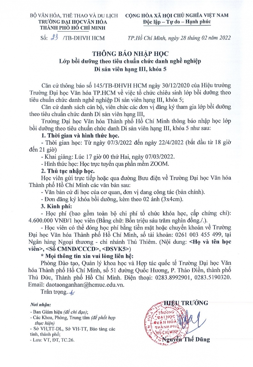 26.03.2026 Thông báo về việc mời các đơn vị quan tâm nộp hồ sơ đăng ký thực hiện gói thầu thực hiện dịch vụ bảo trì phần mềm quản trị Trường Đại học Văn hóa Thành phố Hồ Chí Minh