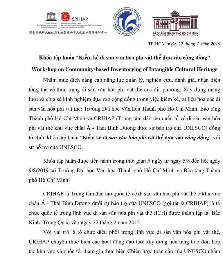 13.04.2026 Thông báo về việc mời các đơn vị quan tâm nộp hồ sơ đăng ký thực hiện gói thầu in ấn phôi bằng, chứng chỉ phục vụ cho công tác đào tạo và cấp phát văn bằng của Trường Đại học Văn hóa Thành phố Hồ Chí Minh