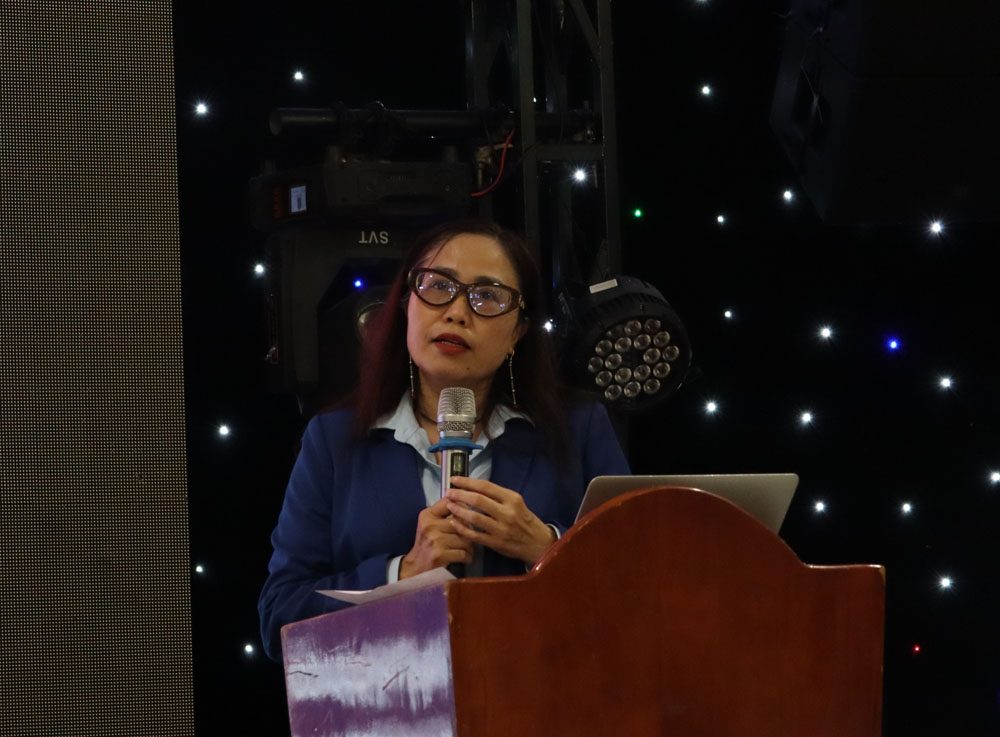 TS. Lê Thị Thanh Thủy, Phó Hiệu trưởng HCMUC trình bày báo cáo tổng kết năm học 2024-2025, điểm lại những kết quả nổi bật trong đào tạo, nghiên cứu, hợp tác và phục vụ cộng đồng. Ảnh: Thái Tám.
