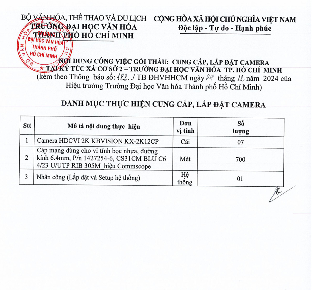13.04.2026 Thông báo về việc mời các đơn vị quan tâm nộp hồ sơ đăng ký thực hiện gói thầu in ấn phôi bằng, chứng chỉ phục vụ cho công tác đào tạo và cấp phát văn bằng của Trường Đại học Văn hóa Thành phố Hồ Chí Minh