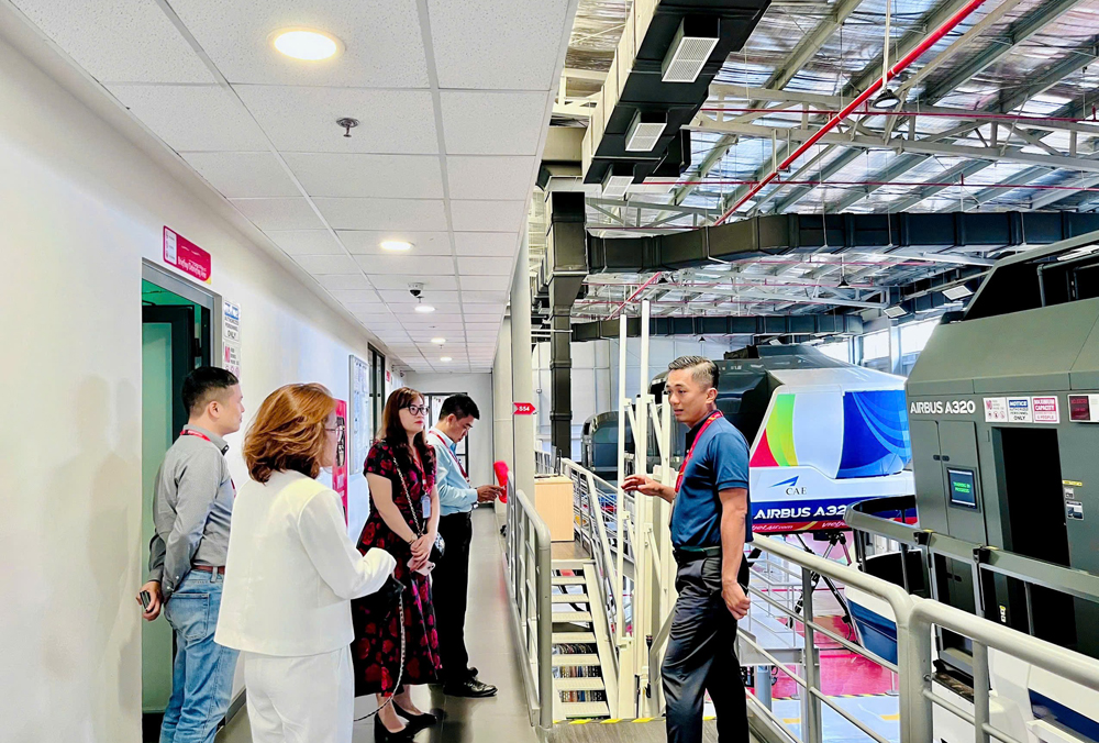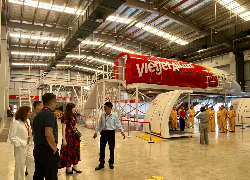 Đoàn công tác tham quan khu thực hành xử lý sự cố bay dành cho tiếp viên hàng không tại VIAA.