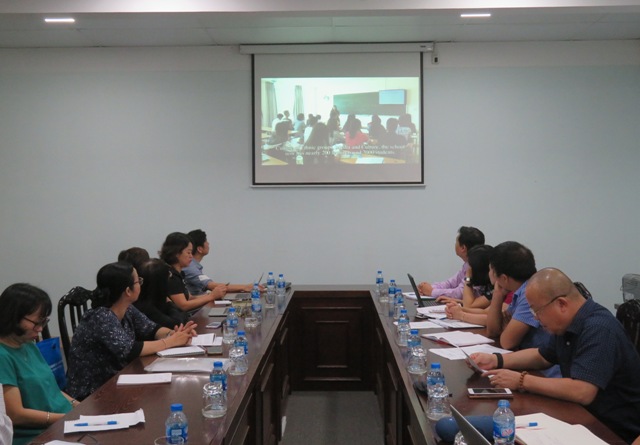Mở đầu buổi làm việc, PGS.TS. Lâm Nhân - Phó Hiệu trưởng nhà trường đã giới thiệu tổng quan về Trường Đại học Văn hóa TP. Hồ Chí Minh như một lời chào thân thiện mà nhà trường dành cho Đoàn cán bộ Cục sở hữu trí tuệ và đại biểu khách mời đại diện cho các tổ chức văn hóa, nghệ thuật khu vực phía Nam nhân dịp ghé thăm và làm việc với nhà trường.