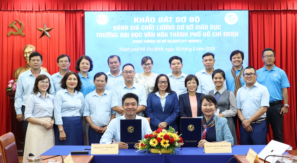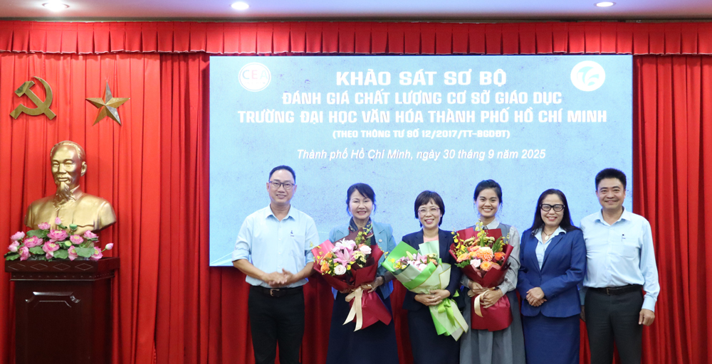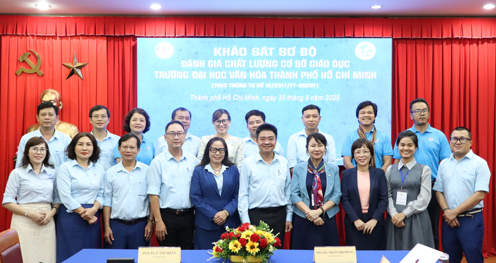 VHSO - Ngày 30/9, Trường Đại học Văn hóa TP. Hồ Chí Minh (HCMUC) đã đón tiếp Đoàn chuyên gia đánh giá ngoài của Trung tâm Kiểm định Chất lượng Giáo dục - Đại học Quốc gia TP. Hồ Chí Minh (CEA) đến thực hiện khảo sát sơ bộ phục vụ kiểm định chất lượng cơ sở giáo dục chu kỳ 2. Đây là bước khởi đầu quan trọng, tạo nền tảng cho đợt khảo sát chính thức sẽ diễn ra từ ngày 14/10 đến 18/10/2025.