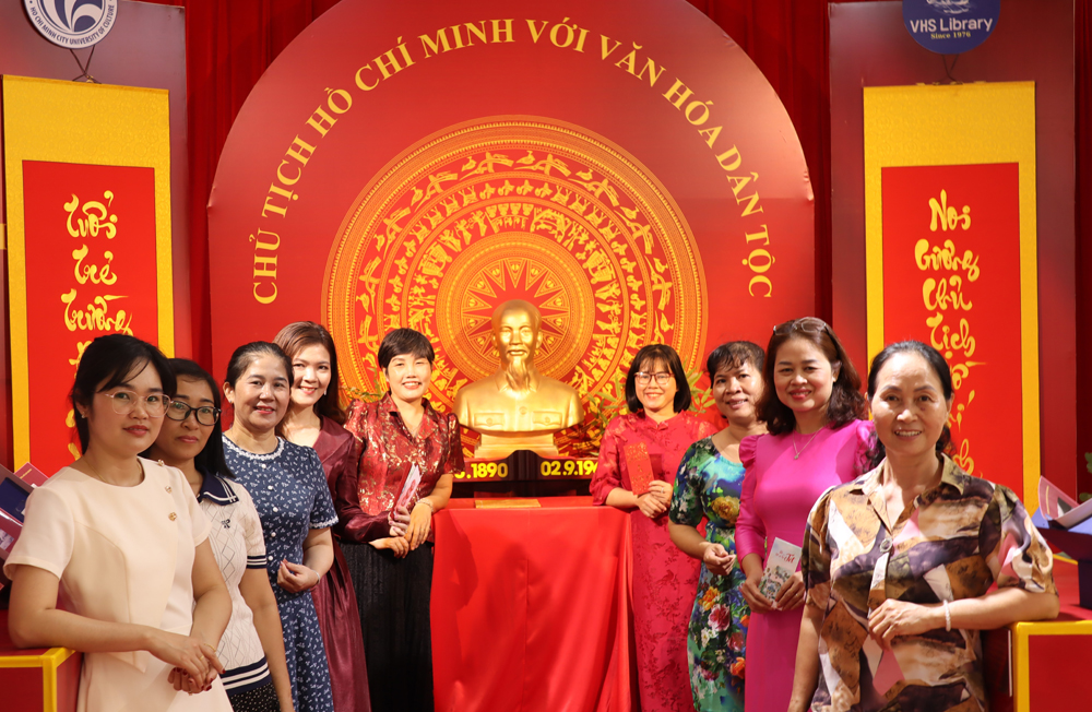 Viên chức, người lao động HCMUC chụp ảnh lưu niệm tại Không gian Văn hóa Hồ Chí Minh trong ngày đầu đến trường làm việc sau Tết Bính Ngọ 2026.