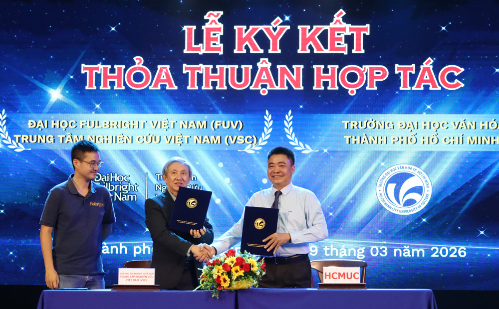 VHSO - Chiều 9/3, tại Hội trường C (cơ sở 1), Trường Đại học Văn hóa Thành phố Hồ Chí Minh (HCMUC) đã tổ chức Lễ ký kết thỏa thuận hợp tác với các cơ quan, tổ chức, doanh nghiệp và công bố chuỗi hoạt động tưởng niệm 100 năm ngày mất của nhà chí sĩ yêu nước Phan Châu Trinh (1926 - 2026). Chương trình được phối hợp thực hiện cùng Đại học Fulbright Việt Nam - Trung tâm Nghiên cứu Việt Nam (VSC) và nhiều đối tác trong các lĩnh vực học thuật, xuất bản, bảo tàng, nghệ thuật biểu diễn và truyền thông. Sự kiện đánh dấu bước khởi động chính thức cho chuỗi hoạt động tưởng niệm nhằm tôn vinh cuộc đời, tư tưởng và những đóng góp to lớn của nhà yêu nước, nhà khai sáng Phan Châu Trinh; đồng thời mở ra không gian học thuật liên ngành để tiếp cận, đối thoại và tái diễn giải giá trị tư tưởng “Chi bằng học” trong bối cảnh toàn cầu hóa, chuyển đổi số và thời đại trí tuệ nhân tạo.