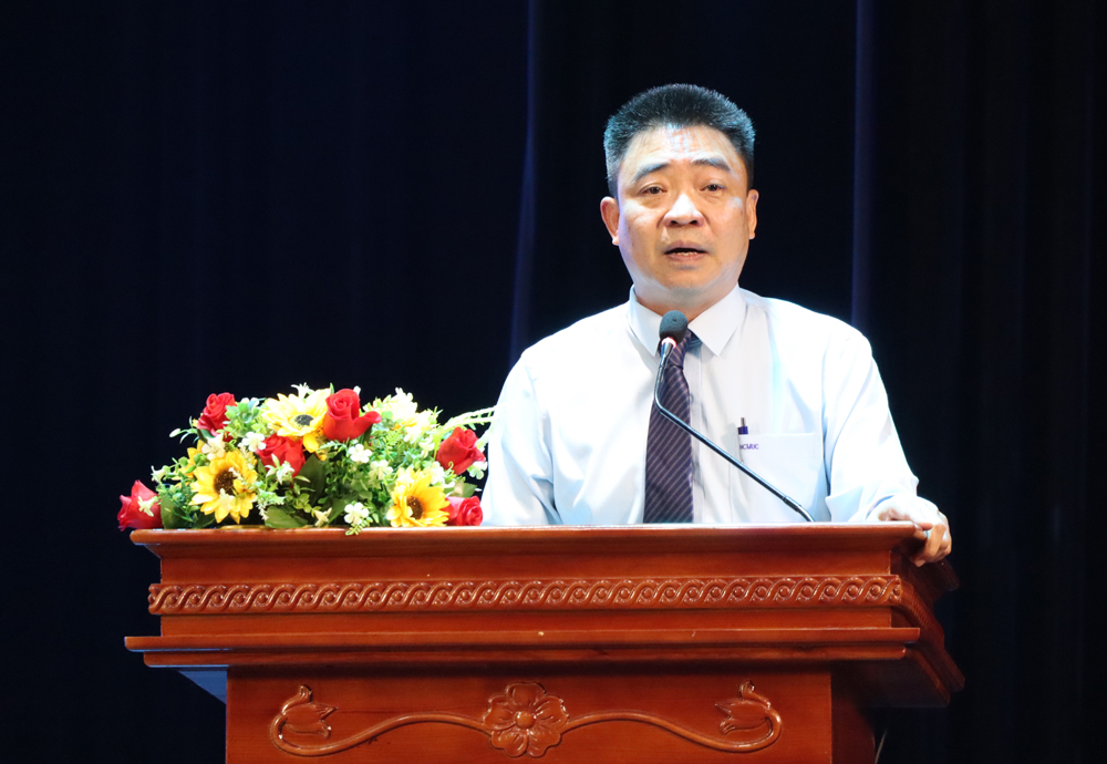 PGS.TS Lâm Nhân, Hiệu trưởng HCMUC phát biểu khai mạc lễ ký kết.