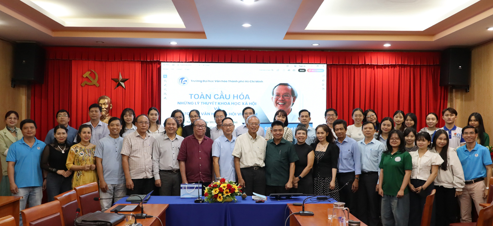 VHSO - Sáng ngày 10/3, Trường Đại học Văn hóa TP. Hồ Chí Minh (HCMUC) tổ chức báo cáo khoa học với chủ đề “Toàn cầu hóa: Những lý thuyết khoa học xã hội” và “Vận dụng lý thuyết vào thực tiễn văn hóa - xã hội Việt Nam”. Chương trình diễn ra tại Phòng Hội thảo (Cơ sở 1), kết hợp trực tiếp và trực tuyến, thu hút sự quan tâm của đông đảo giảng viên, nhà khoa học, nghiên cứu sinh và sinh viên. Đây là hoạt động học thuật có ý nghĩa thiết thực nhằm cập nhật những tiếp cận lý thuyết hiện đại trong khoa học xã hội, đồng thời góp phần tăng cường năng lực phân tích và vận dụng tri thức vào thực tiễn nghiên cứu, giảng dạy và quản lý văn hóa trong bối cảnh toàn cầu hóa ngày càng sâu rộng.
