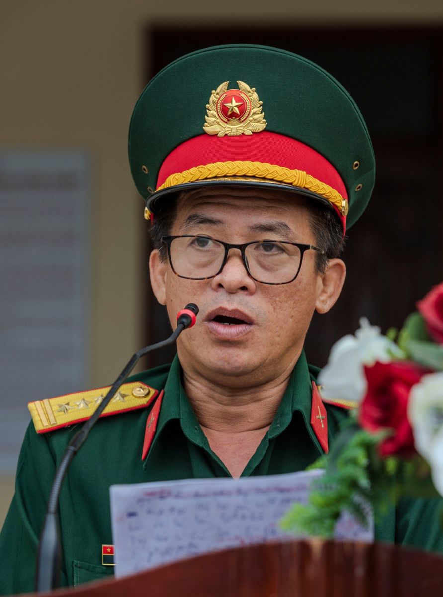 Đại tá Nguyễn Trọng Lý, Phó Giám đốc Trung tâm Giáo dục Quốc phòng - An ninh sinh viên - Đại học Quốc gia Thành phố Hồ Chí Minh phát biểu tuyên bố khai giảng khóa học. Ảnh: TT.