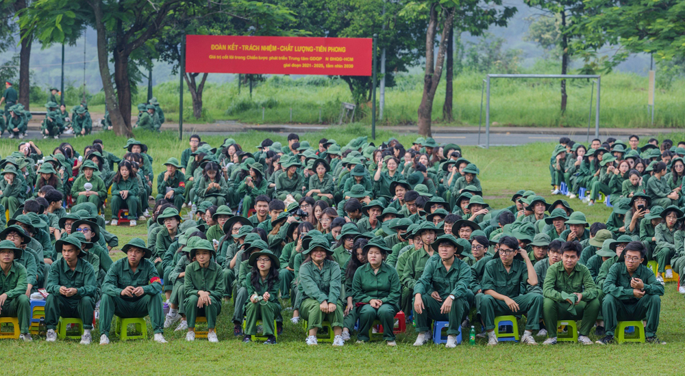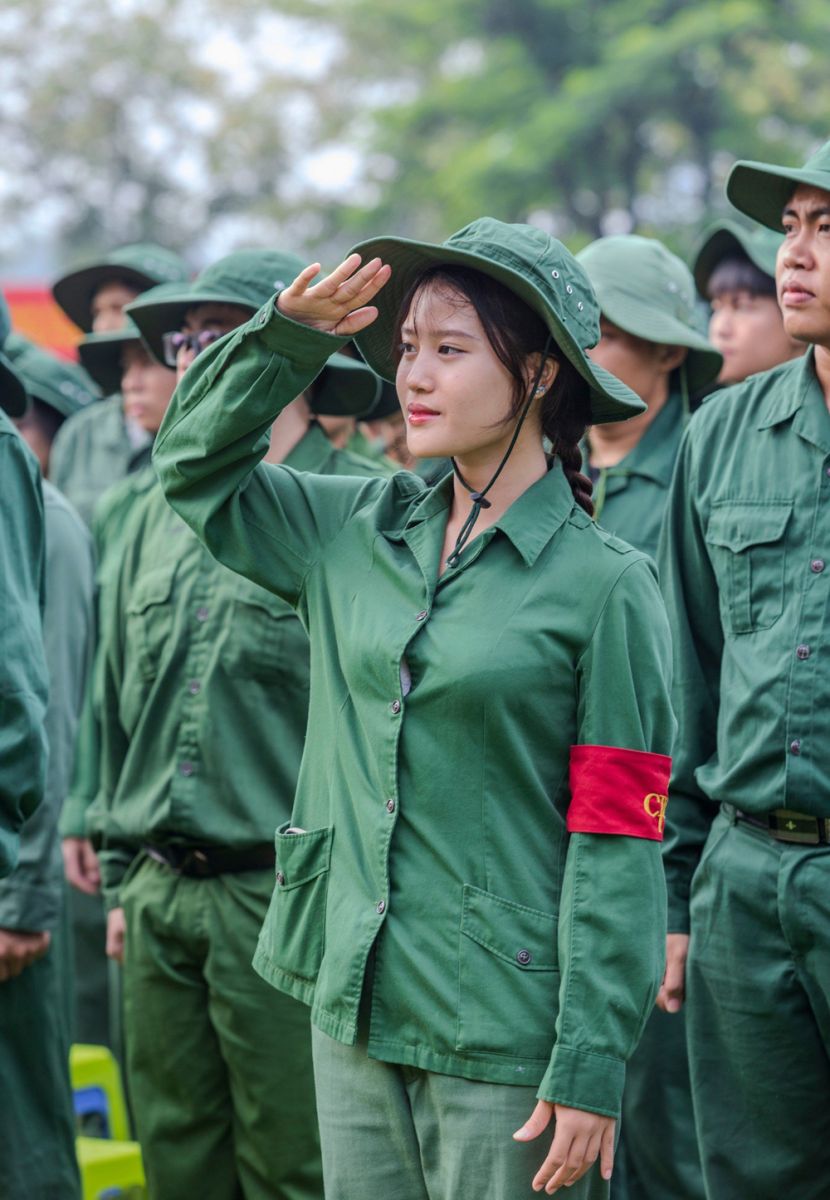 Niềm tự hào của sinh viên Trường Đại học Văn hóa Thành phố Hồ Chí Minh trong ngày đầu “nhập ngũ”. Ảnh: TT.
