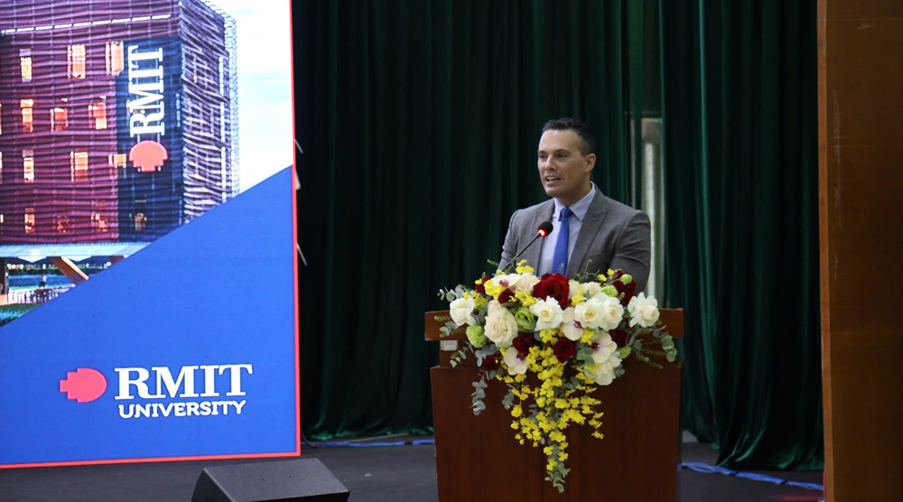 TS. Nuno F. Ribeiro, Đại học RMIT Việt Nam trình bày tham luận “Rào cản trong thăng tiến nghề nghiệp của phụ nữ trong ngành du lịch tại Việt Nam: Thách thức và tác động đối với phát triển nguồn nhân lực bền vững". Ảnh: Thái Tám.