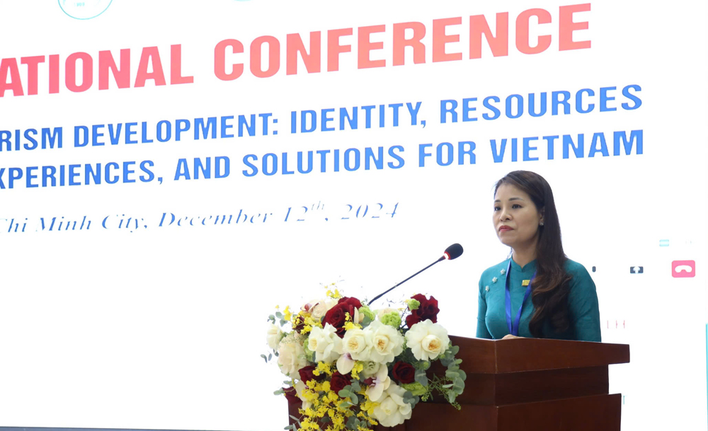 Phát biểu khai mạc Hội thảo, ThS. Nguyễn Thị Thu Hương, Giám đốc Phân hiệu Học viện Phụ nữ Việt Nam tại Thành phố Hồ Chí Minh cho biết: Bản sắc và nguồn lực là những yếu tố cốt lõi, không chỉ góp phần tạo nên sự khác biệt và sức hấp dẫn cho các điểm đến, mà còn đóng vai trò quan trọng trong việc bảo tồn các giá trị văn hóa độc đáo và tài nguyên thiên nhiên quý giá. Tuy nhiên, hiện nay chúng ta cũng đối mặt với những thách thức lớn cần phải giải quyết trong việc giữ gìn bản sắc văn hóa, bảo vệ môi trường và nâng cao chất lượng nguồn nhân lực. Việc kiến tạo bản sắc du lịch không chỉ đòi hỏi sự sáng tạo trong việc khai thác các giá trị văn hóa, lịch sử và thiên nhiên đặc sắc của từng địa phương, mà còn cần học hỏi từ những kinh nghiệm quốc tế, kết hợp với những nghiên cứu kỹ lưỡng đặc thù của Việt Nam.