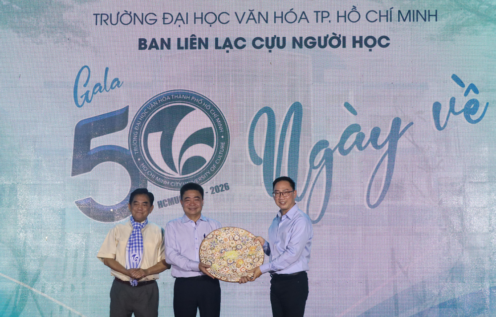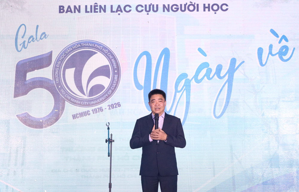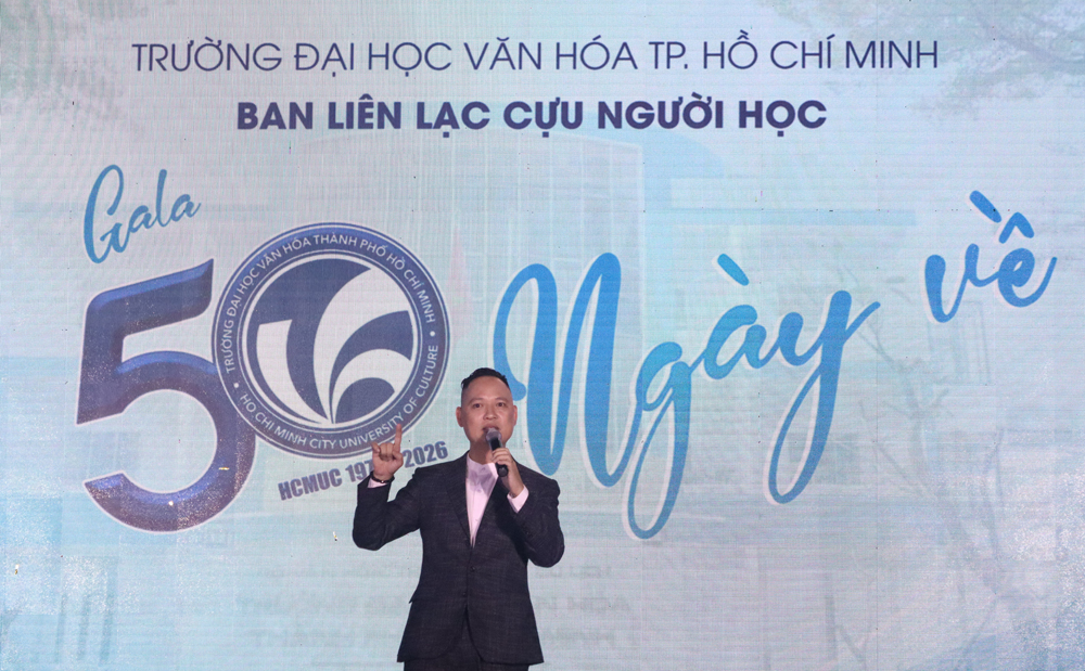 VHSO - Tối ngày 2/1, trong không khí trang trọng và ấm áp, Trường Đại học Văn hóa TP. Hồ Chí Minh (HCMUC) đã tổ chức Chương trình Gala “50 năm - ngày về” kỷ niệm 50 năm thành lập Trường (03/01/1976 - 03/01/2026). Chương trình là điểm nhấn đặc biệt trong chuỗi hoạt động kỷ niệm nửa thế kỷ hình thành và phát triển của HCMUC sau Hội thảo khoa học diễn ra cùng ngày. Gala “50 năm - ngày về” có sự tham dự của lãnh đạo Trường qua các thời kỳ; các nhà khoa học, nhà quản lý, giảng viên, viên chức, người lao động; đại diện các cơ quan, đơn vị đối tác, cùng đông đảo cựu học viên, sinh viên đã và đang đồng hành với HCMUC trong suốt chặng đường 50 năm qua.