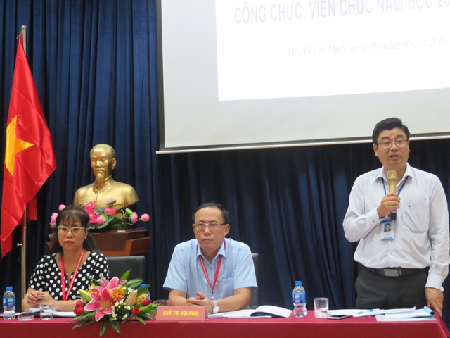 Hòa trong không khi náo nức chào đón năm học mới 2019-2020. Nhằm phát huy quyền dân chủ của cán bộ, công chức, viên chức và người lao động; tổng kết năm học 2018-2019; đề ra phương hướng, nhiệm vụ cho năm học mới 2019-2020. Chiều ngày 06/09/2019, Trường Đại học Văn hóa Tp. Hồ Chí Minh tổ chức Hội nghị Công chức – Viên chức năm học 2019 - 2020 tại Cơ sở 2 (Số 288, đường Đỗ Xuân Hợp, phường Phước Long A, Quận 9, TP. Hồ Chí Minh). Tham dự Hội nghị, đại diện khách mời có bà Huỳnh Thị Ngọc Thanh, Phó Chủ tịch Công đoàn Khối cơ sở Bộ Văn hóa, Thể thao và Du lịch. Về phía nhà trường có PGS.TS. Nguyễn Thế Dũng, Bí thư Đảng ủy, Hiệu trưởng Nhà trường; PGS.TS. Lâm Nhân, Phó bí thư Đảng ủy, Phó Hiệu trưởng Nhà trường; TS. Lê Thị Thanh Thủy, Đảng ủy viên, Phó Hiệu trưởng Nhà trường; TS. Trần Quốc Hoàn, Chủ tịch Công đoàn; cùng các thầy cô giáo là trưởng, phó các Phòng, Khoa, Trung tâm và toàn thể công chức, viên chức, người lao động Nhà trường.