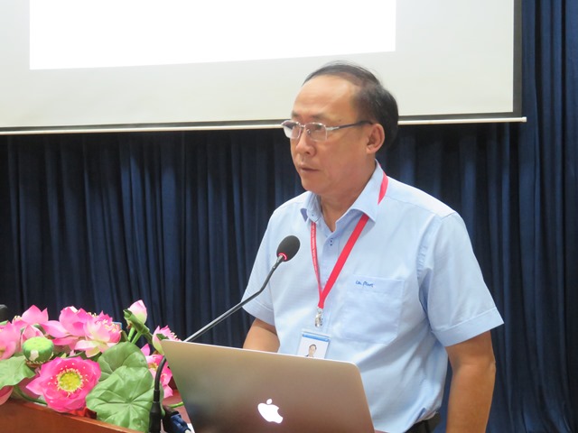TS. Trần Quốc Hoàn, Chủ tịch Công đoàn trường trình bày báo cáo tổng hợp ý kiến đóng góp của các đơn vị thuộc trường cho dự thảo báo cáo tổng kết năm học 2018-2019 và phương hướng, nhiệm vụ năm học 2019-2020