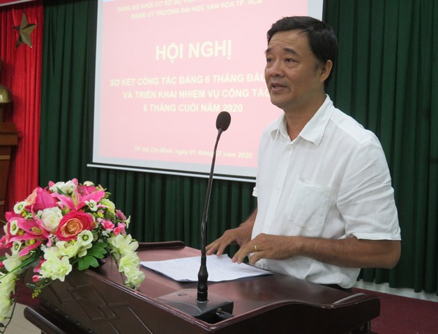 Sáng ngày 01 tháng 07 năm 2020, tại Hội trường B201, Đảng ủy Trường Đại học Văn hóa TP. Hồ Chí Minh tổ chức “Hội nghị sơ kết công tác xây dựng Đảng 06 tháng đầu năm 2020 và triển khai nhiệm vụ công tác 06 tháng cuối năm 2020”. Đến dự Hội nghị có Đ/c Lương Văn Nhiền - Bí thư Đảng ủy Khối cơ sở Bộ Văn hóa, Thể thao và Du lịch; Đ/c Nguyễn Thế Dũng - UVBTV Đảng ủy Khối, Bí thư Đảng ủy; cùng toàn thể các đồng chí là Đảng ủy viên, Bí thư, Phó Bí thư, cấp ủy các chi bộ trực thuộc, các đồng chí đảng viên của Đảng bộ Trường Đại học Văn hóa TP. Hồ Chí Minh.