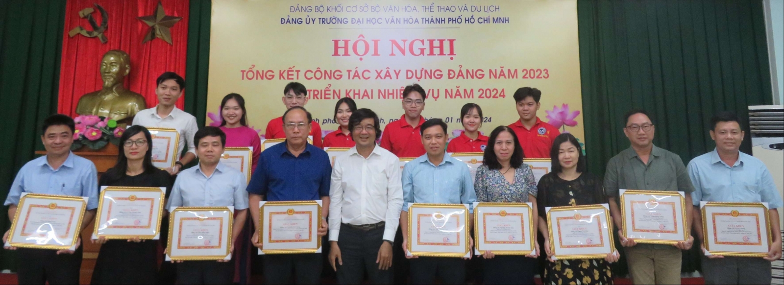 Dịp này, Đảng bộ Trường Đại học Văn hóa Thành phố Hồ Chí Minh đã khen thưởng Chi bộ Giảng viên 4 và Chi bộ Sinh viên 2 đạt tiêu chuẩn Chi bộ “Hoàn thành xuất sắc nhiệm vụ” cùng 16 đảng viên đạt tiêu chuẩn “Hoàn thành xuất sắc nhiệm vụ” năm 2023./.