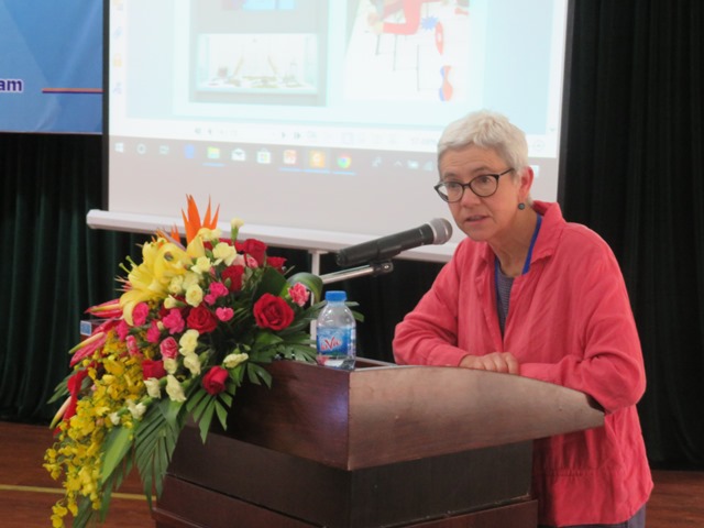 Bà Dinah Eastop - Trung tâm Lưu trữ Quốc gia Anh trình bày tham luận tại Hội thảo.