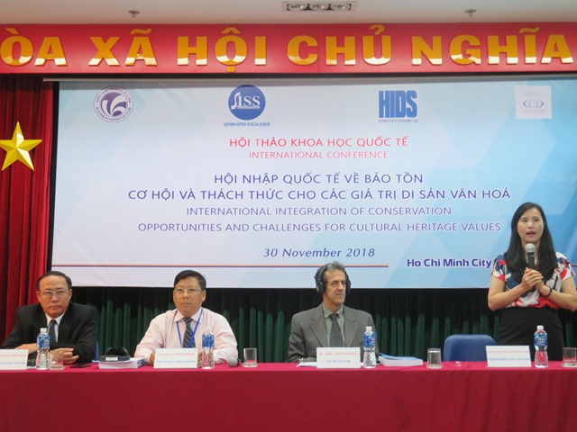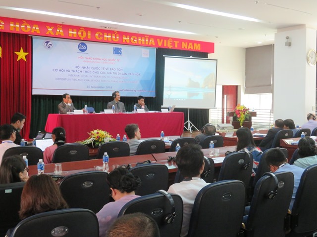 Với mục đích nhìn nhận và đặt ra các vấn đề liên quan cần tìm hiểu, nghiên cứu trong quá trình hội nhập và phát huy giá trị các di sản văn hóa trong bối cảnh hiện nay. Sáng ngày 30 tháng 11 năm 2018, tại Viện Khoa học Xã hội Vùng Nam Bộ, số 49 Nguyễn Thị Minh Khai, phường Bến Thành, Quận 1, TP. Hồ Chí Minh đã diễn ra Hội thảo quốc tế “Hội nhập quốc tế về bảo tồn - Cơ hội và thách thức cho các giá trị di sản văn hóa” do Trường Đại học Văn hóa TP. Hồ Chí Minh, Viện Nghiên cứu phát triển TP. Hồ Chí Minh, Viện Khoa học Xã hội vùng Nam Bộ và Trung tâm Quốc tế về Nghiên cứu Bảo tồn và Bảo quản các tài sản văn hóa (ICCROM) phối hợp tổ chức.