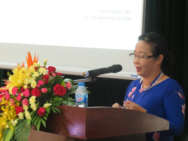 NCS. Huỳnh Ngọc Vân - Nguyên Giám đốc Bảo tàng Chứng tích chiến tranh trình bày tham luận tại Hội thảo.