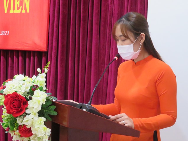 Đ/c Nguyễn Thị Kiều Duyên - Phó Bí thư Chi bộ Sinh viên 2 công bố quyết định kết nạp đảng viên mới cho 07 đoàn viên ưu tú được kết nạp nhân dịp kỷ niệm 91 năm thành lập Đảng Cộng sản Việt Nam.