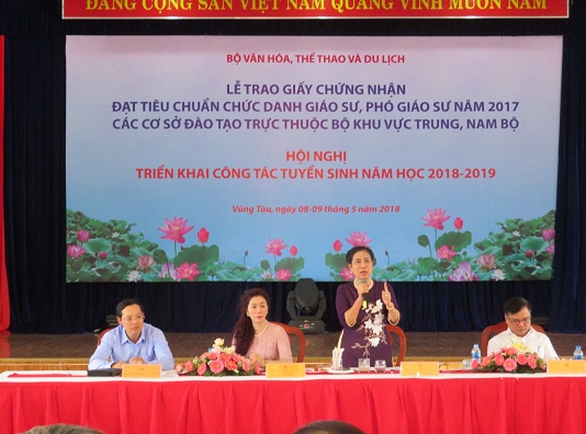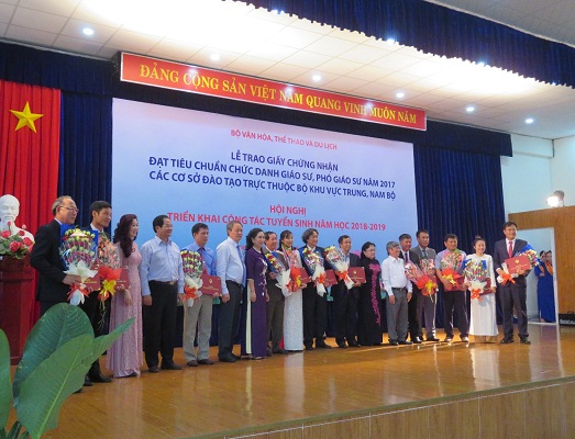 Ngày 08/5/2018, tại thành phố biển Vũng Tàu, Bộ Văn hóa, Thể thao và Du lịch đã tổ chức Lễ trao giấy chứng nhận đạt tiêu chuẩn chức danh Giáo sư, Phó giáo sư năm 2017 cho các nhà giáo các cơ sở đào tạo trực thuộc Bộ ở khu vực Trung, Nam bộ và Hội nghị triển khai công tác tuyển sinh năm học 2018-2019.