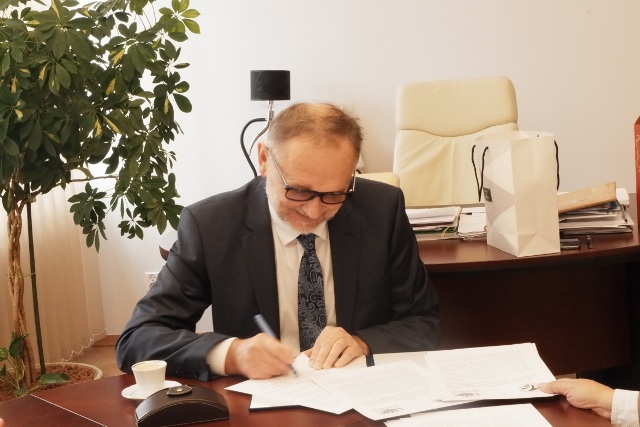 Hiệu trưởng Trường Đại học tổng hợp Zielona Góra ký văn bản hợp tác về đào tạo và NCKH giữa hai trường. Ảnh: NTD.