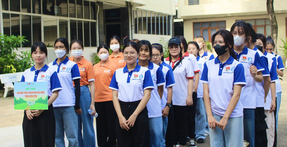 Đội hình sinh viên tình nguyện Trường Đại học Văn hóa TP. Hồ Chí Minh tham gia Chiến dịch Mùa hè xanh năm 2024. Ảnh: BTTCD.
