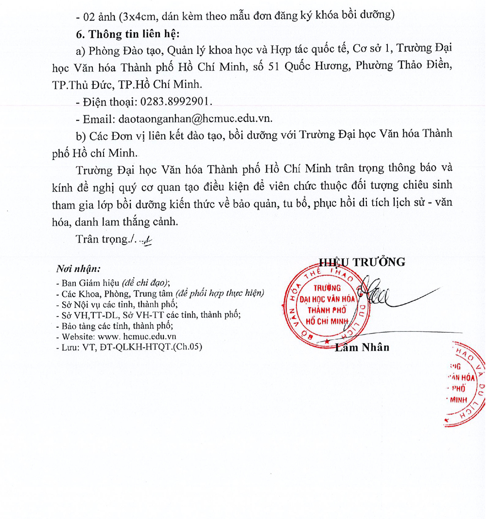 25.03.2026 Thông báo về việc mời các đơn vị quan tâm nộp hồ sơ đăng ký thực hiện gói thầu trang bị tủ gỗ đựng hồ sơ, bàn làm việc,... cho Trường Đại học Văn hóa Thành phố Hồ Chí Minh