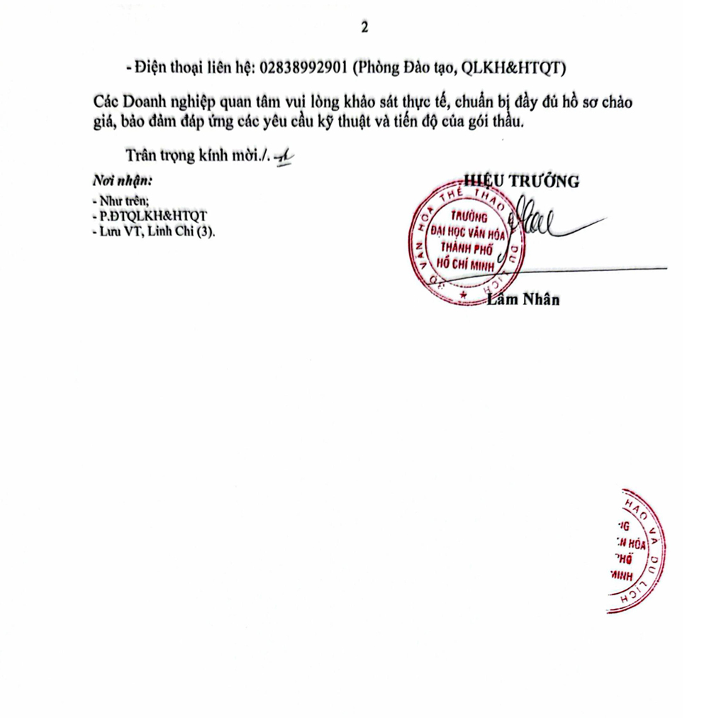 26.03.2026 Thông báo về việc mời các đơn vị quan tâm nộp hồ sơ đăng ký thực hiện gói thầu thực hiện dịch vụ bảo trì phần mềm quản trị Trường Đại học Văn hóa Thành phố Hồ Chí Minh