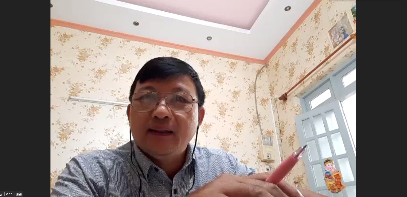 Ông Lê Hoàng, Phó chủ tịch Hội Xuất bản Việt Nam trình bày chuyên đề của mình từ văn phòng làm việc