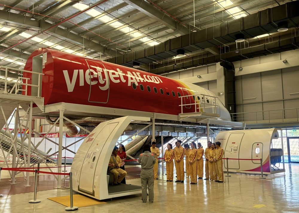 Đoàn công tác tham quan khu thực hành xử lý sự cố bay dành cho tiếp viên hàng không tại VIAA.