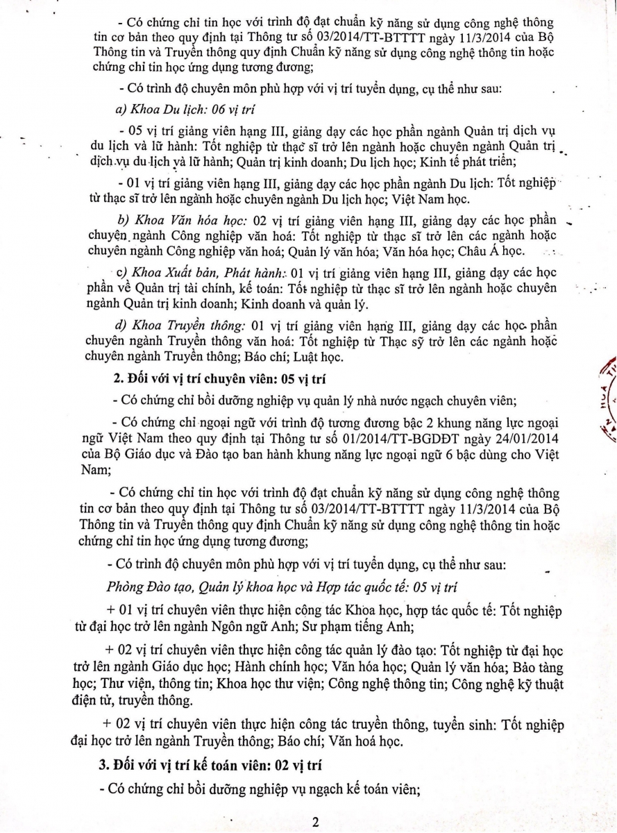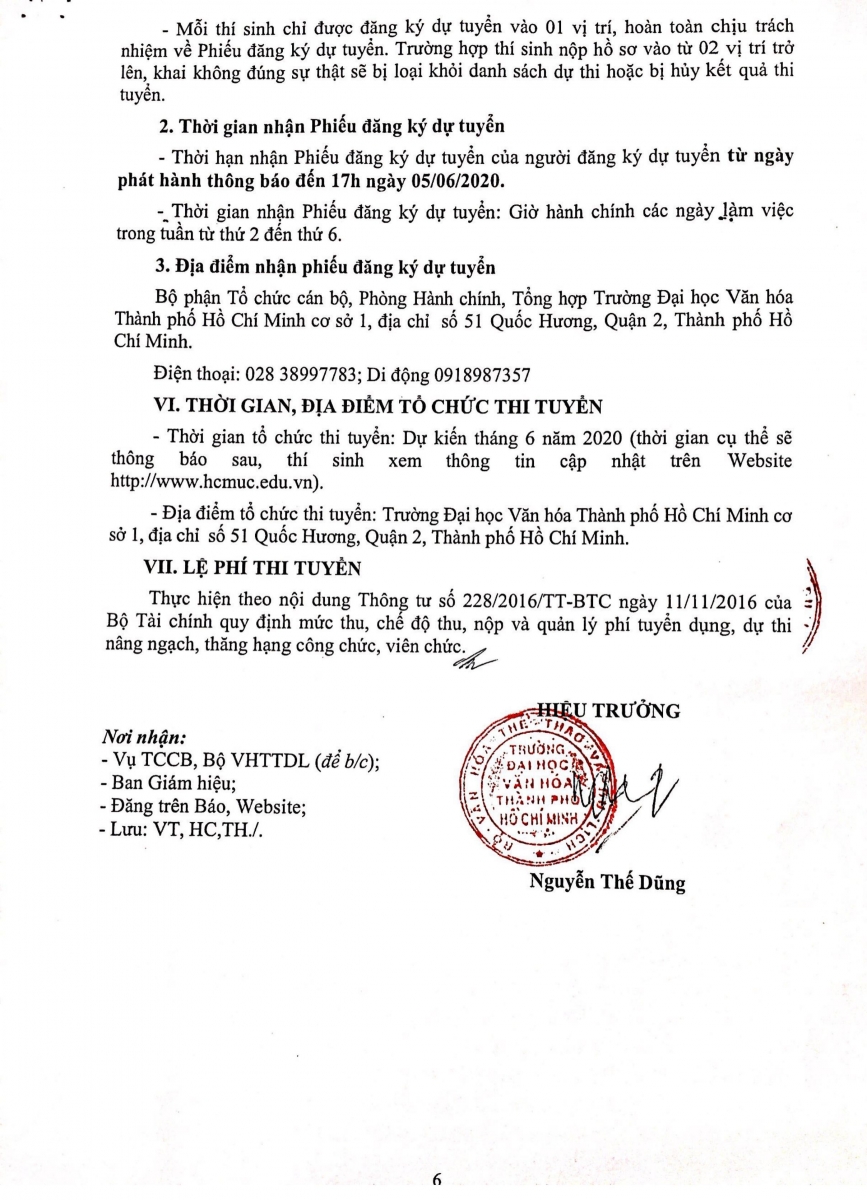 04 May Trường Đại học Văn hóa TP. Hồ Chí Minh thông báo tuyển dụng viên chức năm 2020 Nguyễn Hải Gian 11182 Xem Ứng viên tải mẫu đăng ký dự thi tuyển viên chức TẠI ĐÂY. Share: