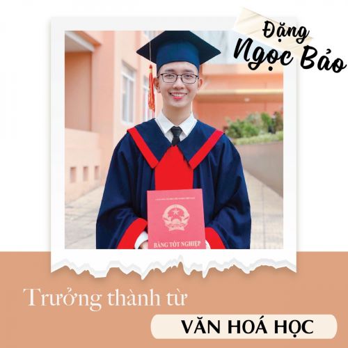 Bài học nhận được từ giảng đường, sự chia sẻ của những người đồng hành, hồi ức đẹp hay thậm chí là cả những tiếc nuối… là những gì anh Đặng Ngọc Bảo, cựu sinh viên  lớp Đại học Văn hóa học 9 (khóa 2015 – 2019), chuyên ngành Văn hóa Việt Nam lựa chọn để  kể  khi nói về 4 năm sinh viên đồng hành cùng khoa Văn hóa học.
