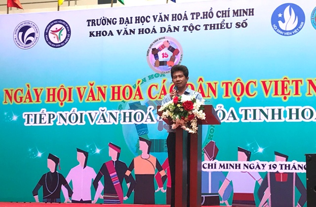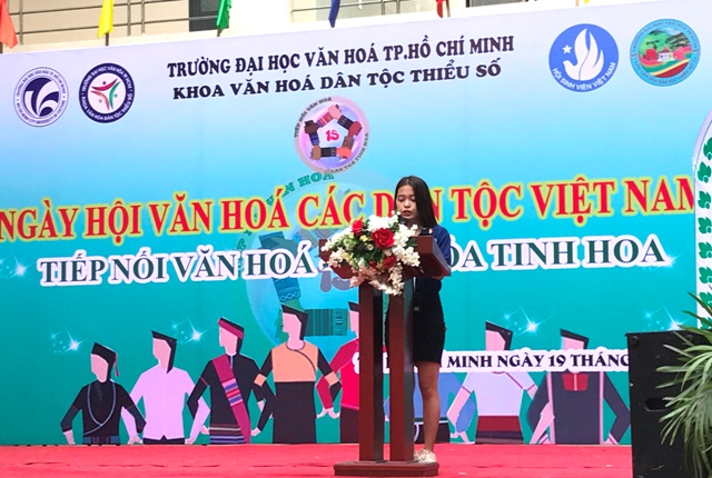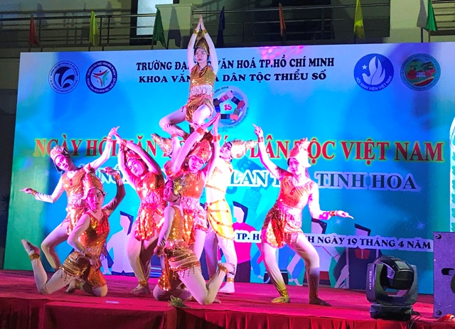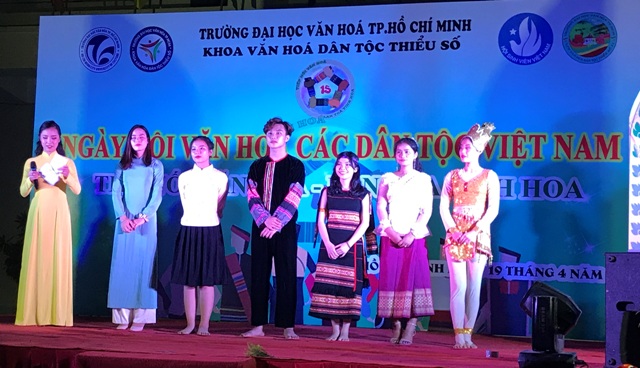 Kỷ niệm Ngày Văn hóa các dân tộc Việt Nam (19- 4) và chào mừng 15 năm thành lập Khoa Văn hóa dân tộc thiểu số, hôm nay tại Trường Đại học Văn hóa Tp. Hồ Chí Minh đã diễn ra chương trình Ngày hội văn hóa với chủ đề "Tiếp nối văn hóa- Lan tỏa tinh hoa". Chương trình với các hoạt động vui chơi như: bán các gian hàng ẩm thực, làm bánh gừng của người Chăm, thắt vòng cầu duyên, các trò chơi dân gian... Đặc biệt phần thi văn nghệ tranh tài của sinh viên các khoa trong trường.
