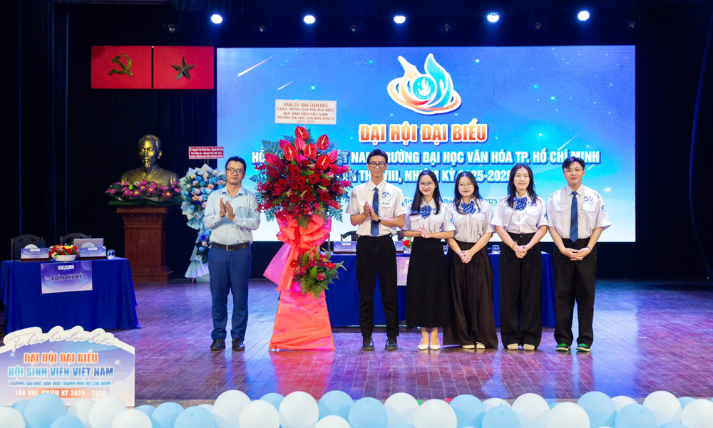 VHSO - Chiều ngày 30/11, tại Hội trường C, Trường Đại học Văn hóa TP. Hồ Chí Minh (HCMUC), Đại hội Đại biểu Hội Sinh viên Việt Nam HCMUC lần thứ VIII, nhiệm kỳ 2025 - 2028 đã diễn ra trọng thể với sự tham dự của 140 đại biểu ưu tú, đại diện cho hơn 3.000 sinh viên toàn trường. Đại hội còn vinh dự đón tiếp lãnh đạo Đảng ủy HCMUC; Hội Sinh viên Việt Nam TP. Hồ Chí Minh; Ban Thường vụ Đoàn Trường, nguyên cán bộ Hội qua các thời kỳ và đại diện Hội Sinh viên các trường bạn trên địa bàn thành phố. Đại hội được xem là sự kiện chính trị quan trọng của sinh viên HCMUC, đồng thời là ngày hội thể hiện bản lĩnh, trí tuệ, tinh thần đoàn kết và khát vọng cống hiến của tuổi trẻ Nhà trường trên hành trình góp phần xây dựng một Việt Nam giàu đẹp, văn minh và hiện đại.