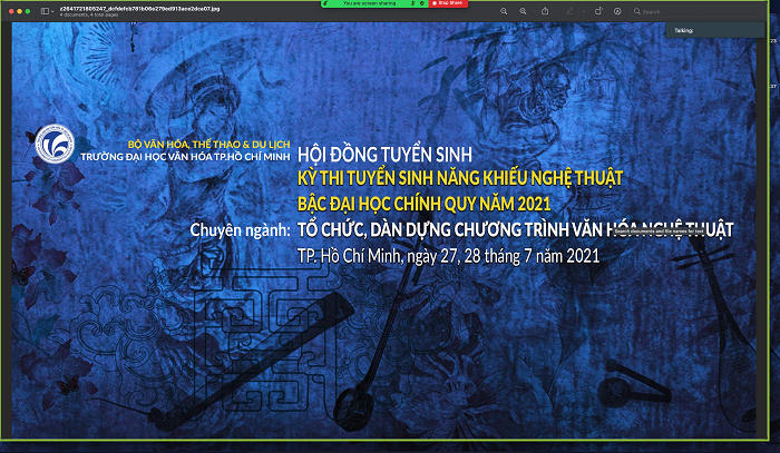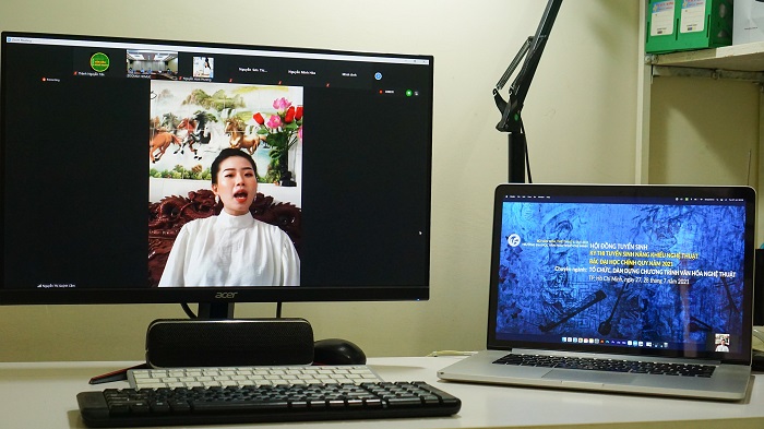Do tình hình dịch bệnh diễn biến phức tạp, để tạo thuận lợi cho thí sinh trường Đại học văn hóa Tp.HCM đã tổ chức thi năng khiếu bằng hình thức trực tuyến và nộp sản phẩm dự thi thay cho hình thức thi trực tiếp như những năm trước. Đây là lần đầu tiên nhà trường tổ chức hình thức thi này, ngày thi thứ nhất đã diễn ra thành công và để lại nhiều ấn tượng khó quên với thí sinh lẫn Hội đồng chấm thi.