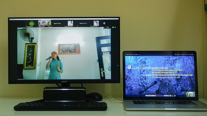 Cứ thế buổi thi đã diễn ra trong không khí nghiêm túc nhưng rất chân tình, đậm chất “thi năng khiếu nghệ thuật tại trường văn hóa”. Dù đã được chuẩn bị chu đáo, Trường và Khoa Quản lý văn hóa, nghê thuật cũng đã tổ chức buổi tư vấn online (ngày 23/7/2021) để giúp thí sinh nắm kỹ qui trình thi năng khiếu bằng hình thức online nhưng tình trạng các thí sinh “mất hình”, ban giám khảo “mất tiếng”, ánh sáng lóe vào màn hình không nhìn rõ mặt thí sinh… là những tình huống hoàn toàn khách quan do bị “mất sóng”, “mất 3G” mà BGK và thí sinh đã cùng nhau trải qua, cùng nhau cảm thông và chia sẻ để ngày thi diễn ra thành công tốt đẹp.