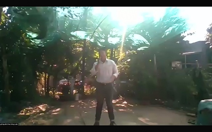 Chọn bối cảnh cho giống nội dung tác phẩm, em đang trực tiếp từ “khu cách ly” và người “nhắc bài…bất ngờ.