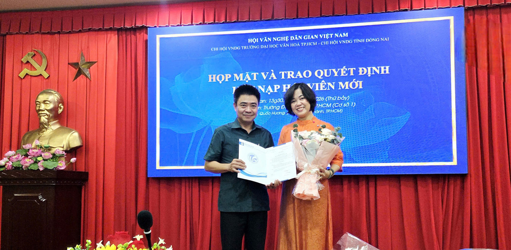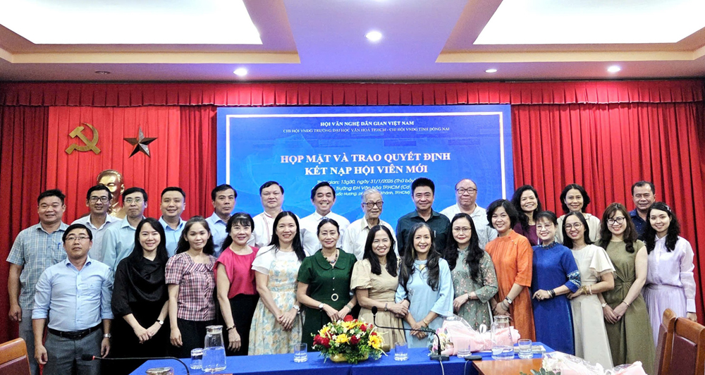 VHSO - Chiều ngày 31/01, tại Phòng Hội thảo (cơ sở 1), Trường Đại học Văn hóa TP. Hồ Chí Minh (HCMUC), Chi hội Văn nghệ Dân gian Việt Nam tại HCMUC đã tổ chức buổi họp mặt tổng kết hoạt động năm 2025, triển khai phương hướng nhiệm vụ năm 2026 và trao quyết định kết nạp hội viên mới. Đây không chỉ là dịp nhìn lại chặng đường hoạt động chuyên môn trong năm qua mà còn là không gian kết nối học thuật, chia sẻ định hướng nghiên cứu và lan tỏa giá trị văn hóa dân gian trong môi trường đào tạo đại học.