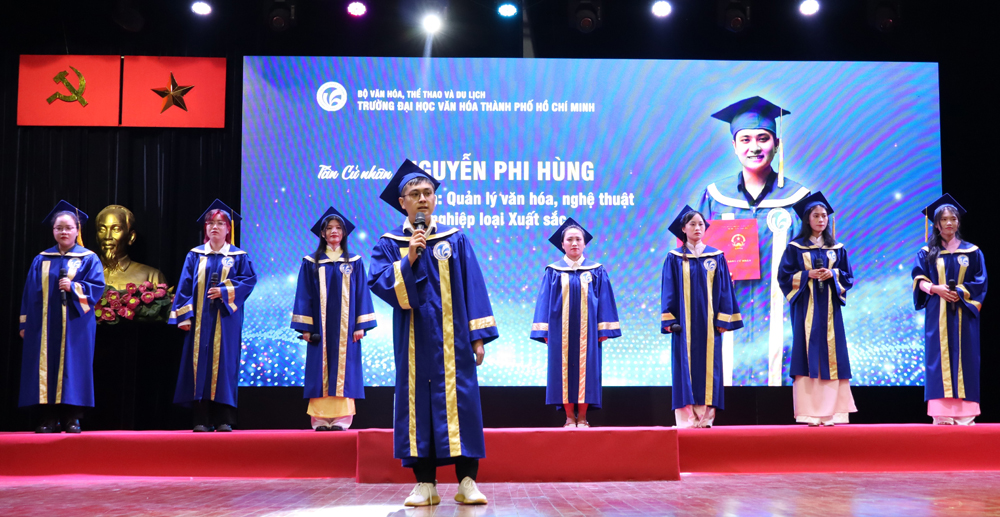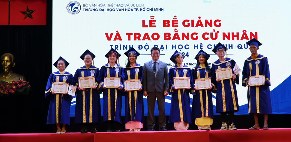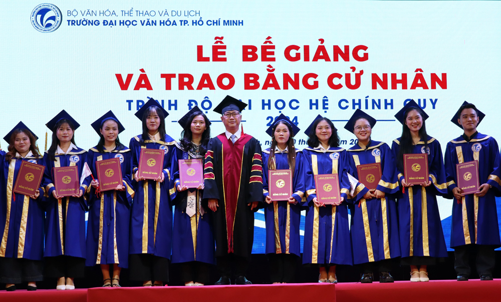 Lễ bế giảng và trao bằng tốt nghiệp cử nhân Văn hóa khóa học 2020 - 2024, khép lại với nghi thức trao bằng cử nhân văn hóa cho các tân cử nhân. Với vốn kiến thức nền tảng, cùng với những kỹ năng tích lũy được trong quá trình học tập và rèn luyện tại ngôi trường có bề dày lịch sử hơn 48 năm qua. Đó sẽ là hành trang quý báu, là động lực giúp các tân cử nhân tự tin để thực hiện mục tiêu, biến ước mơ và hoài bảo của mình thành hiện thực, đáp ứng được sự kỳ vọng của bản thân, gia đình và xã hội./.