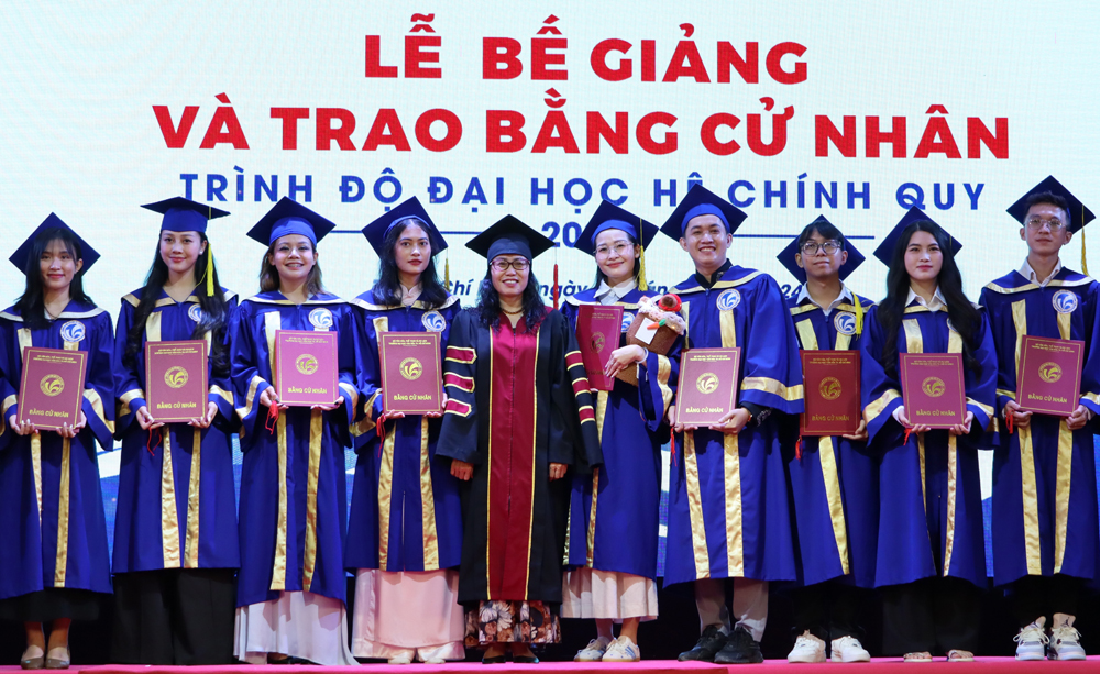 Đánh giá tình hình khóa học 2020 - 2024, ThS. Nguyễn Thanh Tùng, Phó trưởng phòng Đào tạo, Quản lý khoa học và Hợp tác quốc tế cho biết: Xét toàn khóa học 2020 - 2024, tỷ lệ sinh viên tốt nghiệp đúng kỳ hạn hơn 73%, trong đó tỷ lệ học tập loại Giỏi 74,8%, loại Xuất sắc 7,3% và rèn luyện loại Tốt 31,8%, loại Xuất sắc 13,9% là rất cao, thể hiện sự phấn đấu không ngừng nhằm khẳng định về trình độ học vấn và phẩm chất nghề nghiệp của người học.