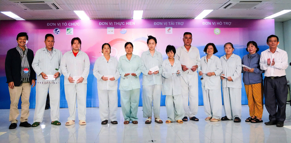 Ông Nguyễn Văn Luân Em, Giám đốc Bệnh viện Tâm thần Tây Ninh và TS.NSƯT.ĐD Hoàng Duẩn trao qùa cho các bệnh nhân.